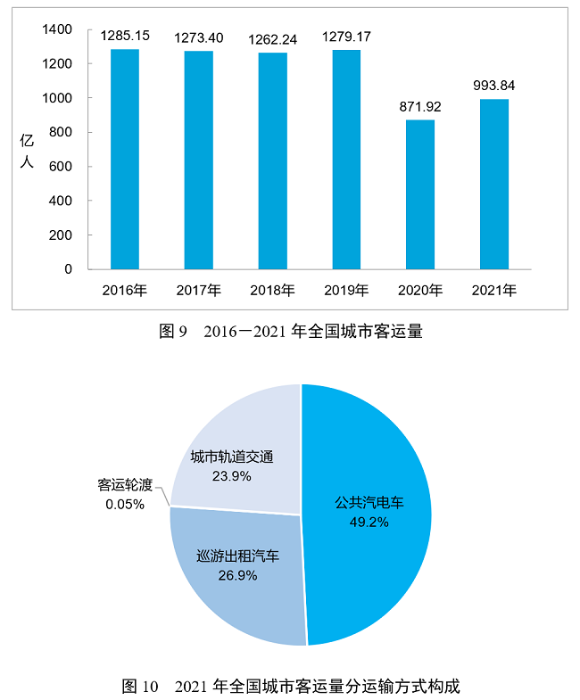 全年完成城市客運量993.84億人,比上年增長14.0%。其中,公共汽電車客運量489.16億人、運營里程335.27億公里,分別增長10.6%和10.7%,城市軌道交通客運量237.27億人、增長34.9%,巡游出租汽車客運量266.90億人、增長5.4%,城市客運輪渡客運量0.51億人、增長30.5%。