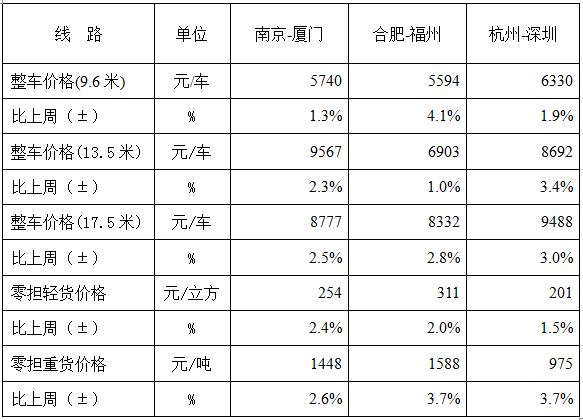 表1 本周部分線路平均價格及環(huán)比情況對比