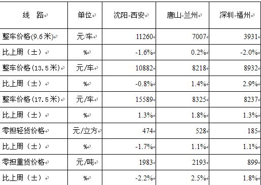 表1 本周部分線路平均價格及環(huán)比情況對比