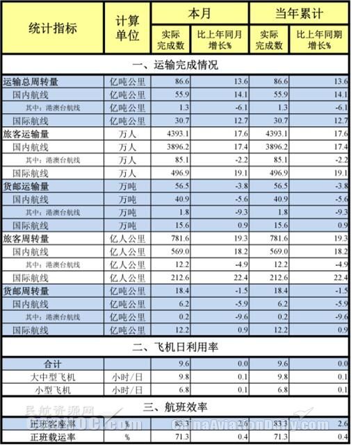 3月20日,民航局官網(wǎng)發(fā)布《中國民航2017年1月份主要運(yùn)輸生產(chǎn)指標(biāo)統(tǒng)計(jì)》,數(shù)據(jù)顯示,2017年1月,中國民航共完成旅客運(yùn)輸量4393.1萬人,比上年同月增長17.6%。國內(nèi)航線完成旅客運(yùn)輸量3896.2萬人,比上年同期增長17.4%。其中,港澳臺(tái)航線85.1萬人,比上年同月下降2.2%。國際航線旅客運(yùn)輸量達(dá)496.9萬人,比上年同期增長19.1%。