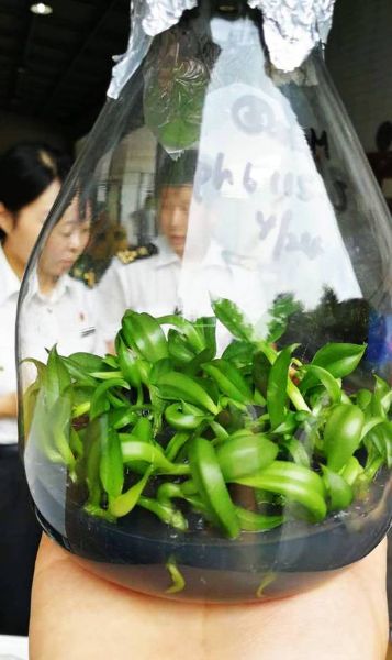 圖為:從日本進口的大花蕙蘭幼苗快速通關 劉詩月/攝
