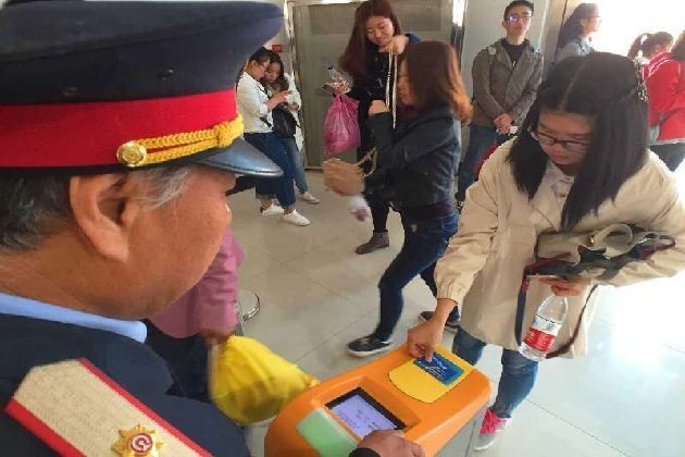記者在始發(fā)站黃土坡車(chē)站外見(jiàn)到,鐵路部門(mén)采取了站外限流的措施,游客分批次進(jìn)站候車(chē),可以刷公交一卡通進(jìn)站乘車(chē)。工作人員提示,公交卡余額低于16元將無(wú)法刷卡乘車(chē)。