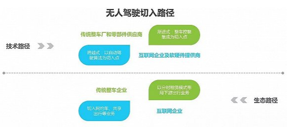 目前無(wú)人駕駛領(lǐng)域入局者主要有兩方:一是谷歌、百度等互聯(lián)網(wǎng)巨頭以及英爾特等軟硬件提供商,從自動(dòng)駕駛算法切入,實(shí)現(xiàn)跨越式發(fā)展;二是奔馳、福田、一汽等傳統(tǒng)老牌車(chē)企,以整車(chē)控制集成為切入點(diǎn),借助高級(jí)輔助駕駛(ADAS)經(jīng)驗(yàn)繼續(xù)深入;雙方的競(jìng)爭(zhēng)從技術(shù)層面延伸至上下游的生態(tài)體系構(gòu)建。目前共享出行理念的誕生和需求增加,分時(shí)租賃、網(wǎng)約車(chē)等形式也成為布局的重點(diǎn)。無(wú)人駕駛技術(shù)加上用戶(hù)場(chǎng)景的建立,將會(huì)顛覆整個(gè)交通運(yùn)輸行業(yè)。