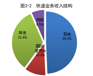 1-10月,同城、異地、國(guó)際/港澳臺(tái)快遞業(yè)務(wù)量分別占全部快遞業(yè)務(wù)量的11.7%、86.5%和1.8%;業(yè)務(wù)收入分別占全部快遞業(yè)務(wù)收入的6.5%、49.3%和10.8%。與去年同期相比,同城快遞業(yè)務(wù)量的比重下降1.4個(gè)百分點(diǎn),異地快遞業(yè)務(wù)量的比重上升1.6個(gè)百分點(diǎn),國(guó)際/港澳臺(tái)業(yè)務(wù)量的比重下降0.2個(gè)百分點(diǎn)。