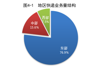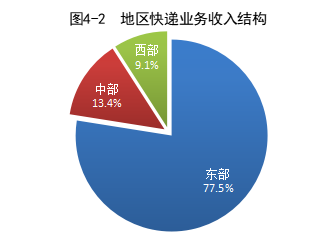 1-10月,東、中、西部地區(qū)快遞業(yè)務(wù)量比重分別為76.9%、15.6%和7.5%,業(yè)務(wù)收入比重分別為77.5%、13.4%和9.1%。與去年同期相比,東部地區(qū)快遞業(yè)務(wù)量比重下降1.4個(gè)百分點(diǎn),快遞業(yè)務(wù)收入比重下降0.7個(gè)百分點(diǎn);中部地區(qū)快遞業(yè)務(wù)量比重上升1.2個(gè)百分點(diǎn),快遞業(yè)務(wù)收入比重上升0.5個(gè)百分點(diǎn);西部地區(qū)快遞業(yè)務(wù)量比重上升0.2個(gè)百分點(diǎn),快遞業(yè)務(wù)收入比重上升0.2個(gè)百分點(diǎn)。
