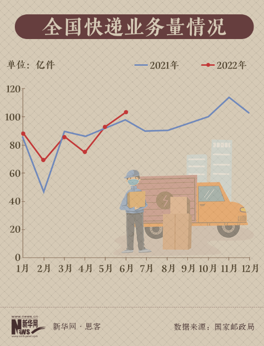 國家郵政局數(shù)據(jù)顯示,今年上半年全國快遞服務企業(yè)業(yè)務量累計完成512.2億件。根據(jù)國家郵政局此前報告,2021年,全國快遞業(yè)務量完成1083億件,首次突破千億件。而目前在疫情影響下,全國半年快遞業(yè)務量仍然超過了500萬億件。