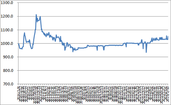 圖1 2016-2023年各周中國(guó)公路物流運(yùn)價(jià)指數(shù)