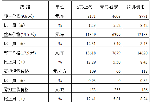 表1 本周部分線路平均價(jià)格及環(huán)比情況對(duì)比