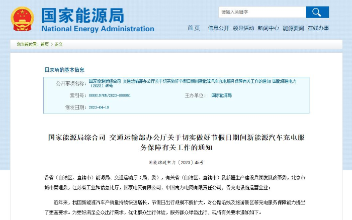 近日,國(guó)家能源局、交通運(yùn)輸部發(fā)布《關(guān)于切實(shí)做好節(jié)假日期間新能源汽車充電服務(wù)保障有關(guān)工作的通知》。主要內(nèi)容如下: