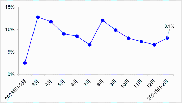 圖2?港口貨物吞吐量月度同比增速變化?