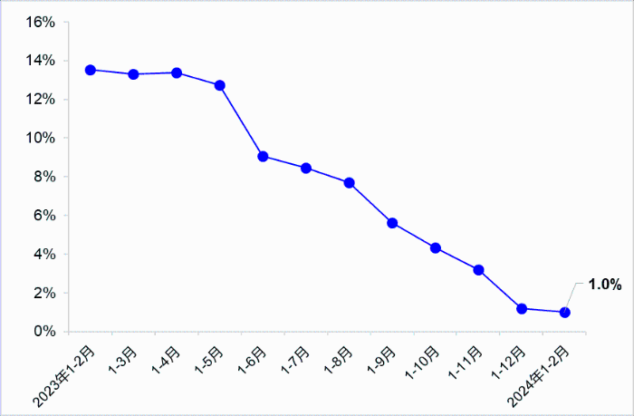 1—2月,完成交通固定資產(chǎn)投資3885億元,同比增長1.0%。其中,完成公路投資2736億元,同比下降6.4%;完成水運投資273億元,同比增長17.0%。