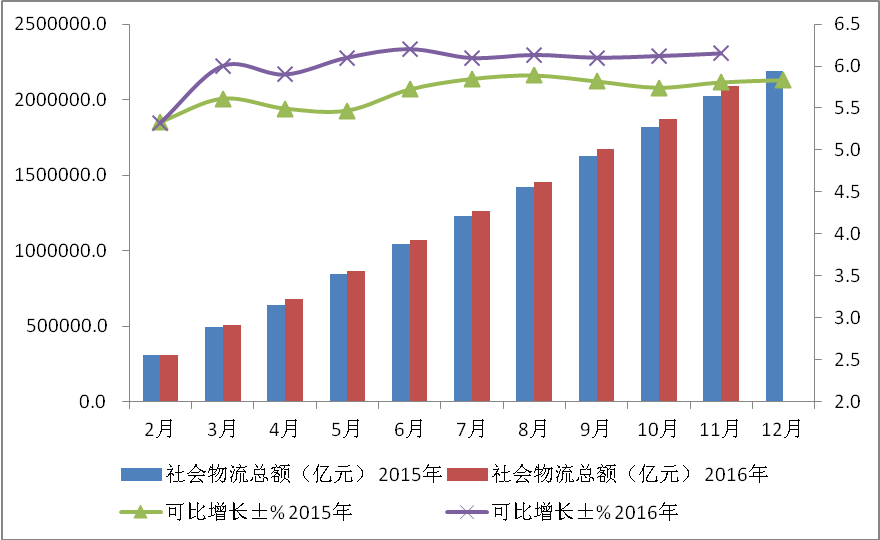 1-11月,全國(guó)社會(huì)物流總額為208.8萬(wàn)億元,按可比價(jià)格計(jì)算,同比增長(zhǎng)6.2%,增速比上年同期提高0.4個(gè)百分點(diǎn),比1-10月提高0.1個(gè)百分點(diǎn)??傮w來(lái)看,物流需求延續(xù)了穩(wěn)中向好的發(fā)展態(tài)勢(shì),社會(huì)物流總額保持平穩(wěn)較快增長(zhǎng),增速穩(wěn)中有升。
