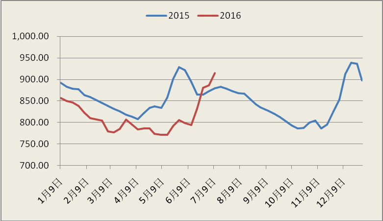 圖4 2015-2016年中國沿海散貨運(yùn)價指數(shù)
