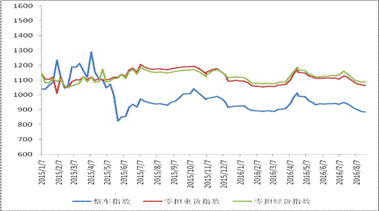 各車型指數(shù)漲跌不一,其中整車指數(shù)、零擔(dān)重貨指數(shù)環(huán)比回落,零擔(dān)輕貨指數(shù)環(huán)比回升。本周,整車指數(shù)為885.5點(diǎn),環(huán)比回落0.3%,比上年同期下降4.9%;零擔(dān)重貨指數(shù)為1064.7點(diǎn),環(huán)比回落0.2%,比上年同期下降9.1%;零擔(dān)輕貨指數(shù)為1090.6點(diǎn),環(huán)比回升0.4%,但比上年同期下降5.1%。