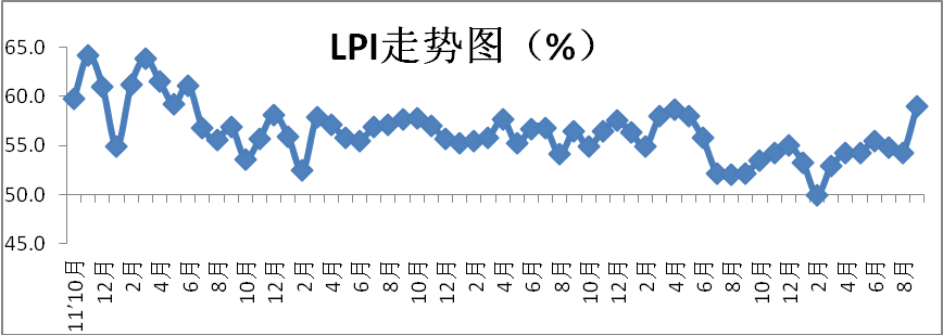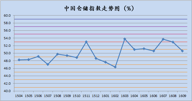 中國物流與采購聯(lián)合會發(fā)布的2016年9月份中國物流業(yè)景氣指數(shù)為59%較上月回升4.7個百分點(diǎn);中國倉儲指數(shù)為50.6%,較上月回落2.4個百分點(diǎn);中國公路物流運(yùn)價指數(shù)為99.5點(diǎn),比上月回升2.7%。