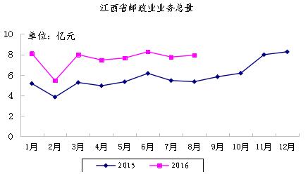 2016年8月,我省郵政企業(yè)和快遞服務(wù)企業(yè)業(yè)務(wù)收入(不包括郵政儲(chǔ)蓄銀行直接營(yíng)業(yè)收入)本年累計(jì)完成48.45億元,同比增長(zhǎng)27.93%,全國(guó)排第19位;全省郵政企業(yè)和快遞服務(wù)企業(yè)業(yè)務(wù)總量本年累計(jì)完成60.59億元,同比增長(zhǎng)46.10%,全國(guó)排名第15位。