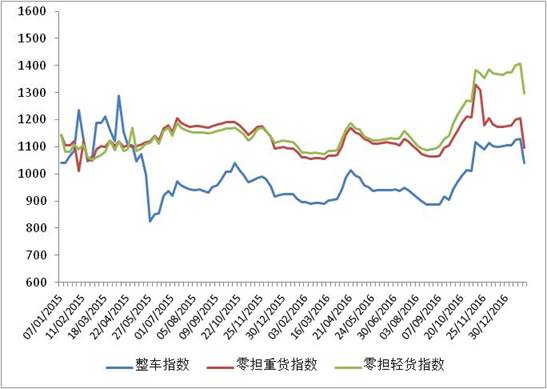 本周(2017年2月6日~2月10日),中國公路物流運(yùn)價(jià)指數(shù)1100.95點(diǎn),環(huán)比回落8.1%。