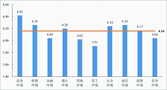 調(diào)查數(shù)據(jù)顯示,物流企業(yè)營商環(huán)境*評價總體向好,被調(diào)查企業(yè)對全國營商環(huán)境各細(xì)分項平均分為4.16分(滿分為5分、下同),總體比較滿意。