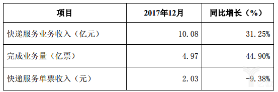 申通快遞2017年12月業(yè)務(wù)經(jīng)營簡報(bào)