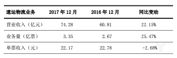 順豐控股2017年12月業(yè)務(wù)經(jīng)營簡報(bào)