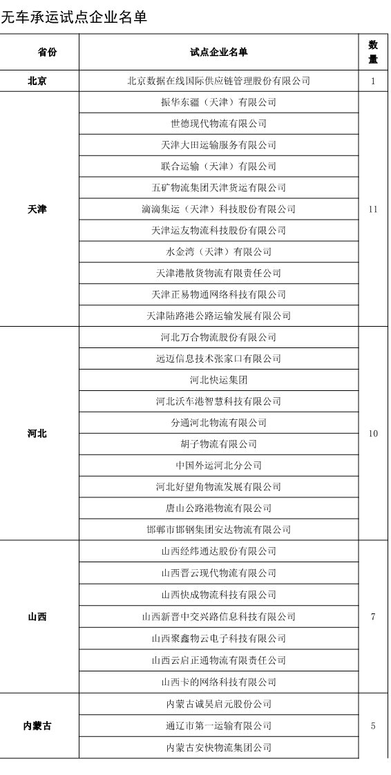 3月6日,交通運(yùn)輸部發(fā)布《交通運(yùn)輸部辦公廳關(guān)于做好無(wú)車承運(yùn)試點(diǎn)運(yùn)行監(jiān)測(cè)工作的通知》?!锻ㄖ凤@示,截至目前,29個(gè)省(區(qū)、市)共篩選確定了283個(gè)無(wú)車承運(yùn)試點(diǎn)企業(yè)并報(bào)部。